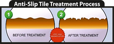 Our safety treatment is a cost efficient and effective method that works and delivers outstanding results immediately. Now you won't need to go to the expense of removing the troublesome slippery tiled floors and replacing them with non-slip flooring, because slippery floors are history.